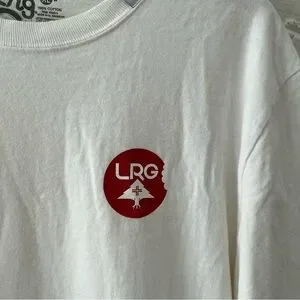 LRG Premium Fit White Short Sleeve Tee Shirt with Red Logo.
