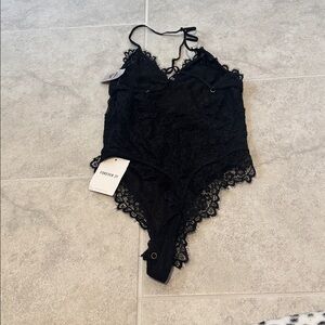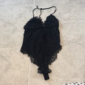 Chic black lace top with delicate patterns. Ideal for a fashionable outfit.