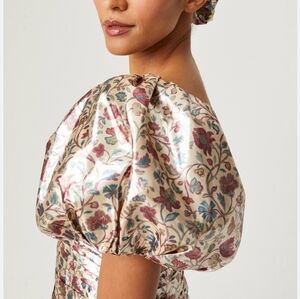 Cream metallic taffeta featuring Vichy Rose Mini print
