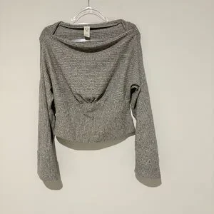 We The Free Crazy on you cropped thermal Cinch Sweater Bell Sleeves grey small
