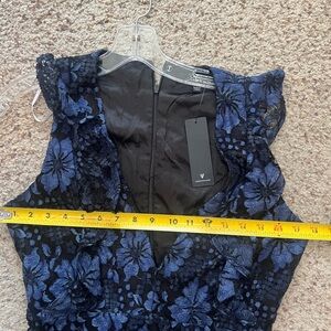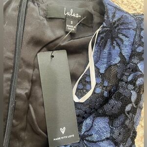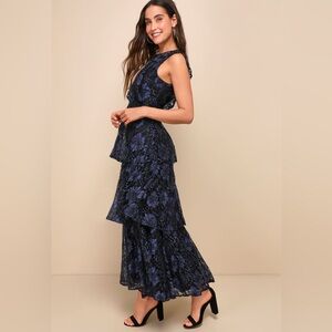 Lulus Molinetto Navy Blue Lace Ruffled Tiered Sleeveless Maxi Dress size Small