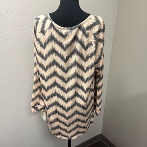 NWT Belle de Jour 1X Tan Gray Chevron Long Sleeve Boho Top