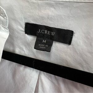 This white cotton J.Crew blouse elevates a classic button-front silhouette with romantic ruffle detailing and refined tailoring. Crafted in lightweight cotton, it has that polished structure J.Crew does so well — breathable, soft, and easy to wear year-round.
