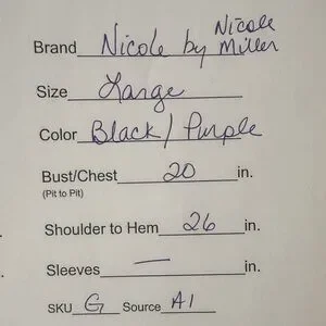Bust (pit to pit): 20”, Length: 26”, Fabric: 100% Polyester