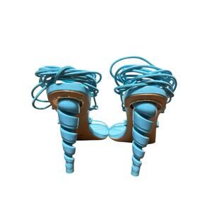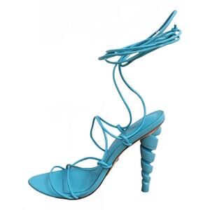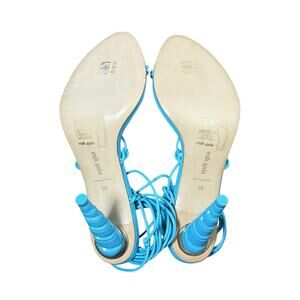 Cult Gaia NWOB Turquoise Blue Sculptural Sandal Leather Ankle Wrap 38 8