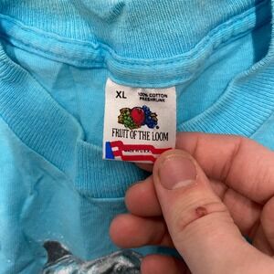Vintage Fruit of the Loom Dolphin Graphic T-Shirt XL Blue Single Stitch 90s Mens