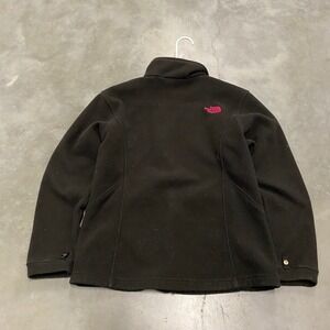 The North Face Womens Black Full Zip Fleece Jacket Pink Logo Midweight Layer