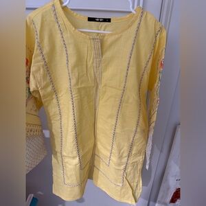Khaadi Yellow Embroidered Women's Shirt Pakistani
