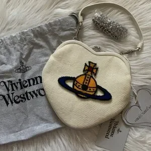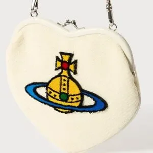 NWT Vivienne Westwood Belle Heart Frame Bag in white wool
