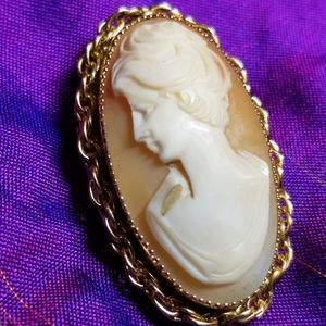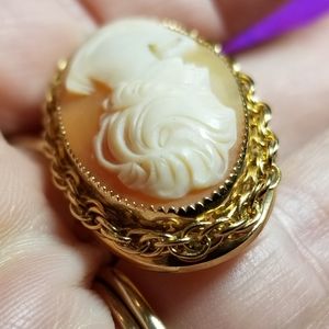 Vintage cameo brooch carved shell gold tone pin oval classic jewelry