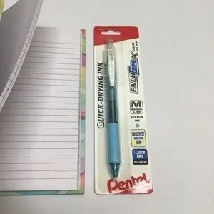 Pentel pen is an EnerGel-X liquid gel pen with quick dry/no smear ink. Medium 0.7mm.