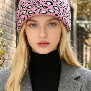 Leopard Print Beanie - Pink, Tan, White, Grey Eaveless