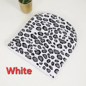 Add a touch of wild fun to your outfit with this leopard print knit beanie. Your choice of vibrant pink, sophisticated tan, classic white, and bold grey. These hats are a must-have for any fashion enthusiast.