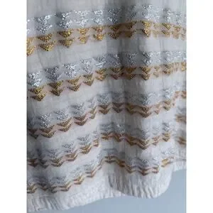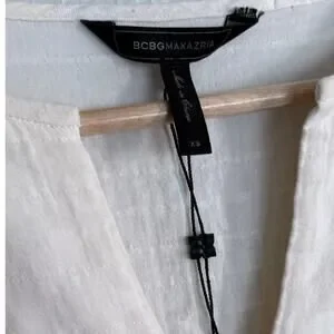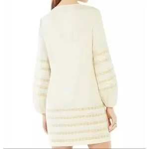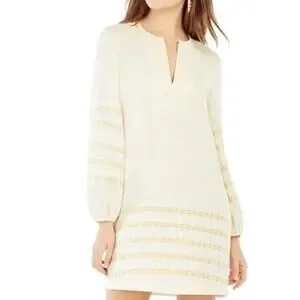 BCBGMAXAZRIA bcbg cream beige silver gold zigzag embroidered cotton tunic dress