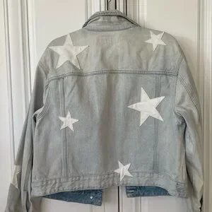 Blank NCY Casual Encounter White Star light wash Denim Jean Jacket trucker sz L