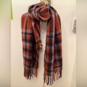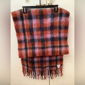 Brora Tartan Mohair /Alpaca Blend Red-Black Plaid XL Scarf Shawl 21” X 88”