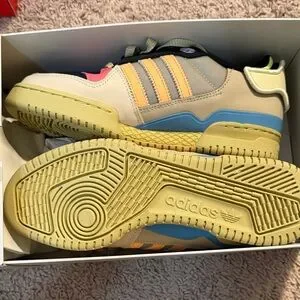 Vibrant Adidas sneakers with navy, pink, and orange accents. Ideal for active kids.