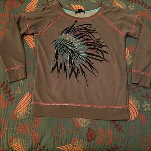Indian headdress bling crew neck hoodie like new super soft. Size medium. Thin soft Sweatshirt material.