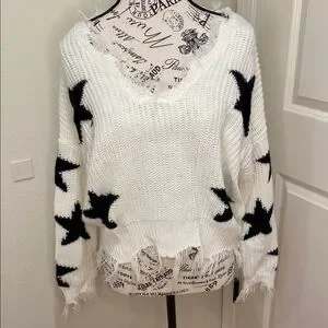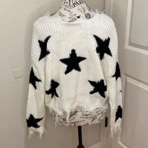 White and Black Star Sweater