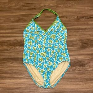 Lands End one-piece halter neck in blue and green design