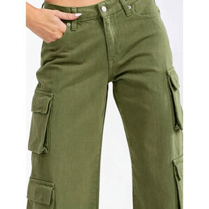 Introducing these stylish women's wide-leg cargo denim pants, designed with button closures and convenient pockets for a modern twist on a classic look. Crafted from a soft cotton-rayon blend, these pants are perfect for casual outings or as a unique component in a trend-forward ensemble. Ideal for those seeking a versatile addition to their collections, these pants are a bestseller with their seamless blend of comfort and style.