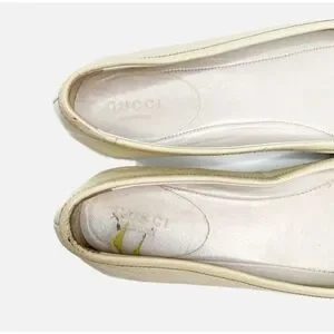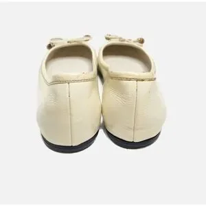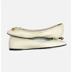 Authentic GUCCI Cream Ivory Patent Leather Bamboo Tassel Bow Ballet Flats 35.5 G
