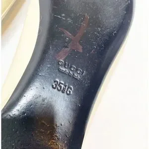 Damaged- missing one bamboo tassel. Would still be cute if you cut the other tassels off and just left the bows. There are also a few marks on the sides, including a red spot, a grey spot, and two light pen marks (see photos- specifically view side images carefully). Soles show little to no wear.