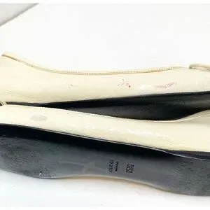Authentic GUCCI Cream Ivory Patent Leather Bamboo Tassel Bow Ballet Flats 35.5 G.