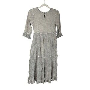 Young Threads Denim Tiered Dress Size M Midi Lace Aari Embroidery Gray Blue NWT