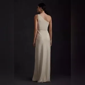Anthropologie BHLDN Dylan One-Shoulder Satin Formal Cocktail Maxi Dress 12 NWOT