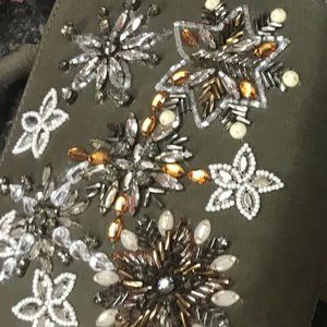 Rebecca Minkoff Stargazing Beaded Suede Box Bag Olive Rhinestone Crossbody NWT