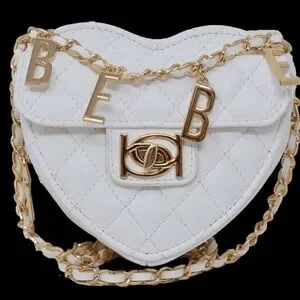bebe White Quilted Heart Mini Bag with Gold Chain