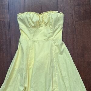 Commense Midi Bustier Strapless Yellow Dress with Front Slit, Size XS