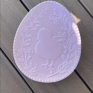 Beautiful pink egg-shaped plate featuring a charming chick design. Perfect for adding a touch of elegance to your table setting.
