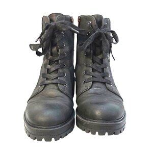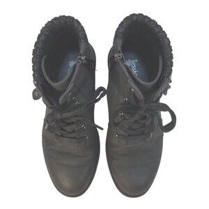 Jessica Black Lace-Up Ankle Boots With Knit Collar & Side Zip Womens Size 7M