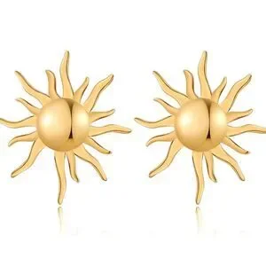 New in box! GREICHFAN Large Gold Sun Stud Statement Earrings. Gold Sun Stud Earrings: Lightweight design with a length of 1.65 inches and a width of 1.46 inches, each earring weighs just 0.15 oz. The golden sun earrings are simple yet eye-catching, made of stainless steel and sparkling on the ears.
