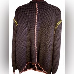 POL Medium Black Chunky Knit Crochet Cardigan Pink & Yellow Whip Stitching NWOT