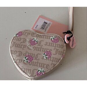 Juicy Couture Berry Sweet Coin Purse Wristlet Sandstone Cherry Blossom Strawberry and Bows NEW