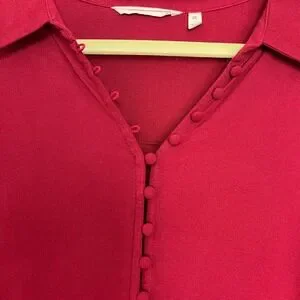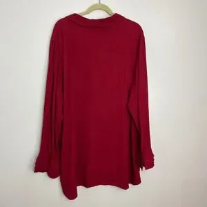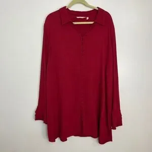 Soft Surroundings Red Sonnet Button Front Ruffled Sleeve Tunic Poet Blouse 2X