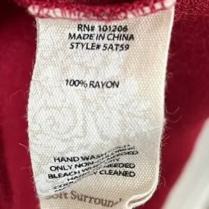 Radiate confidence in this stunning Soft Surroundings tunic shirt, a captivating blend of sophisticated style and effortless comfort. The rich ruby red hue, reminiscent of a fine wine, draws the eye, while the delicate row of buttons cascading down the front adds a touch of refined detail. Experience the luxurious feel of the fabric against your skin, designed to drape beautifully and flatter your silhouette. The unique ruffled detailing on the sleeves introduces a playful yet elegant flair, creating a look that is both contemporary and timeless. Perfect for a chic dinner date or a stylish day out shopping.