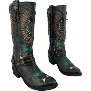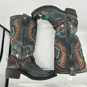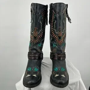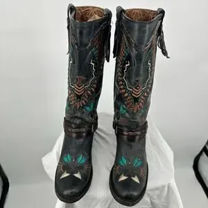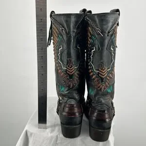 Women's Black Corral Eagle Overlay w/ Embroidery & Harness Biker Boots 10M A3616