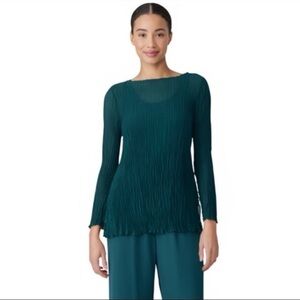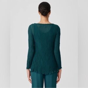 NWT Eileen Fisher Crinkled Sheer Silk Georgette Bateau Neck Long Top