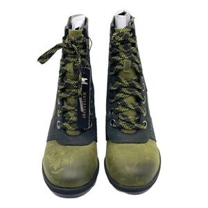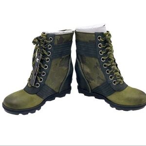 SOREL Lexie Wedge Lace Up Waterproof Boots Hiker Green Fall Winter Spring