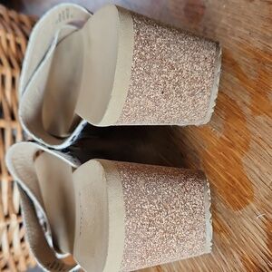 Leather upper, cork wedge heels 3", Criss-cross faux cow hair with gold metal accents grommets, cushioned footbeds, no slip soles