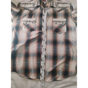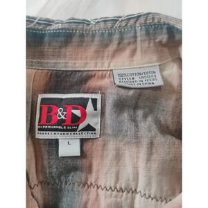 The Mens B&D by Panhandle Slim Large Long Sleeve Pearl Snap Shirt is a stylish and versatile piece of western wear in a classic brown color. Made of comfortable cotton material, this shirt features a collared neckline with a snap closure and button accents. The vintage-inspired design with a plaid pattern and pointed collar adds a touch of Western flair, making it suitable for casual occasions year-round. Embrace the rugged look with this quality shirt from Panhandle Slim.