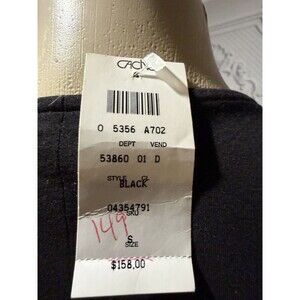 The Vintage Caché dress is a classic piece with a solid black color and a V-neckline, perfect for formal occasions or workwear. Made from a blend of spandex and rayon, this sleeveless dress features a zip closure and ankle-length hem. Accented with a buckle and rhinestone detailing, this 90s-inspired bodycon dress also has stretch for a comfortable and flattering fit. Perfect for summer, fall, and spring seasons, this knee-length dress is a timeless addition to any wardrobe.