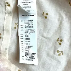 40% polyester 35% virgin wool 12% alpaca 8% acrylic 5% other fiber