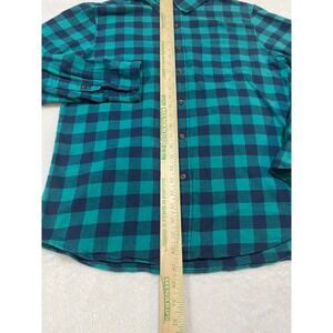 J.Crew Mens Flannel Shirt Teal Navy Buffalo Check Button Down AZ838 Large