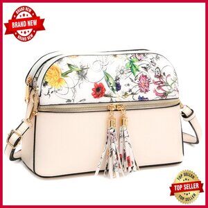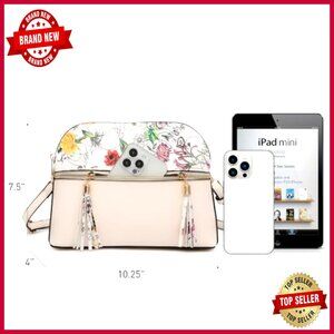 Vegan Leather Crossbody Bag with Tassel Zipper Pocket Adjustable Strap Travel