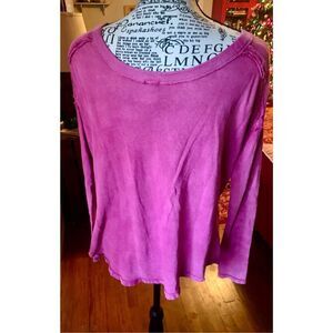 Free People Dark Pink Distressed Tee